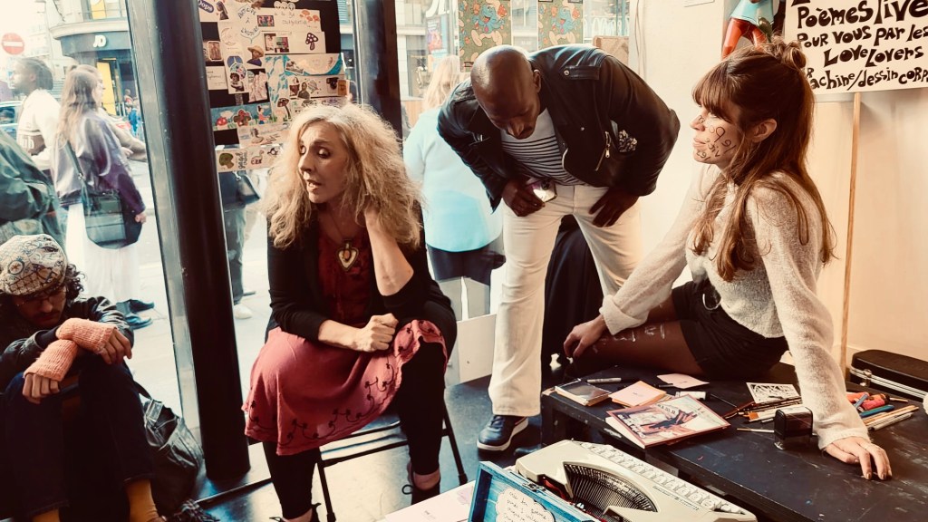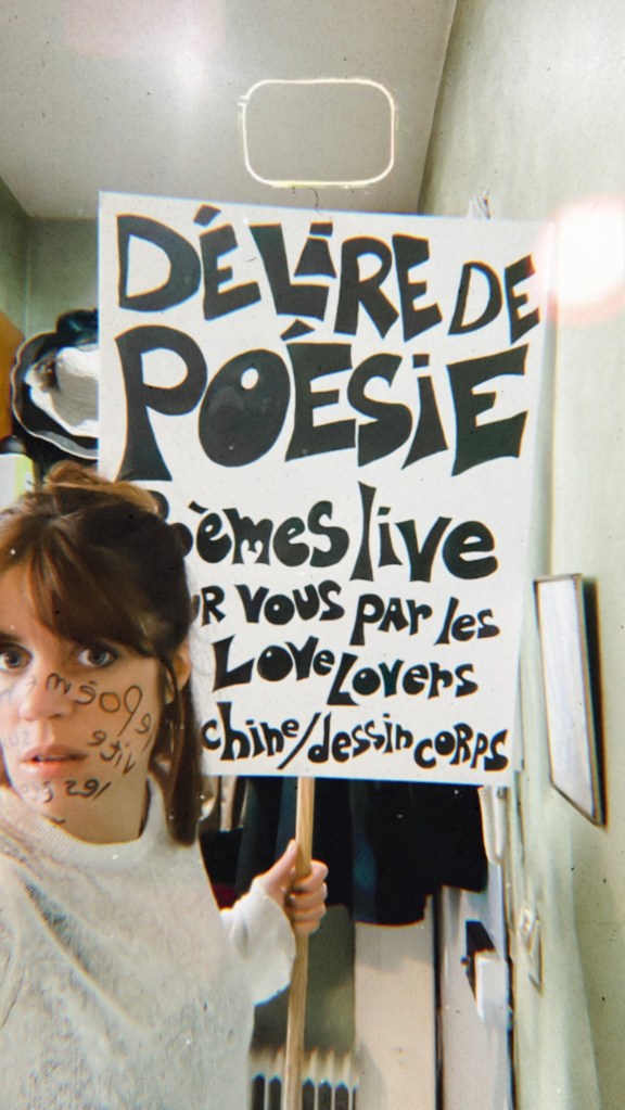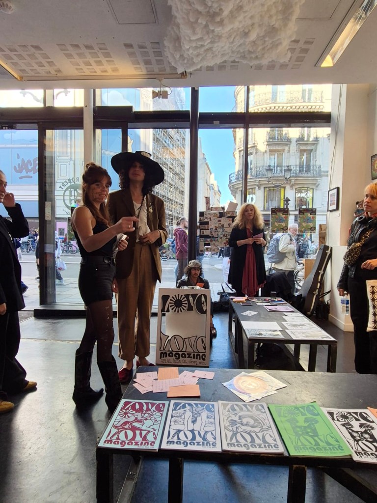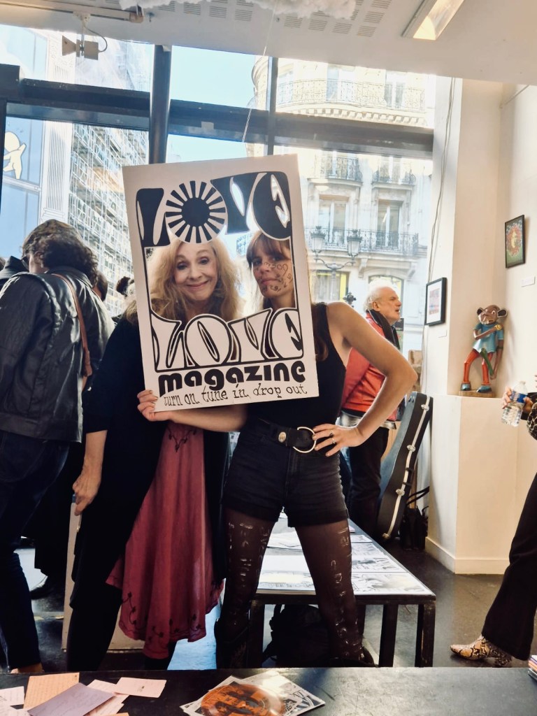 In October 2024 LOVE LOVE magazine joined Lucydelic at 59Rivoli for a psychedelic experience in art and poetry. Lisa Marie Jarlborn and her Love Lovers – Hannah Molin Delafosse, Thomas Jasmin, Elise Demozay, Antonia Alexandra Klimenko & Marc Pradel offered live music and poetry, a poetry workshop & body painting.